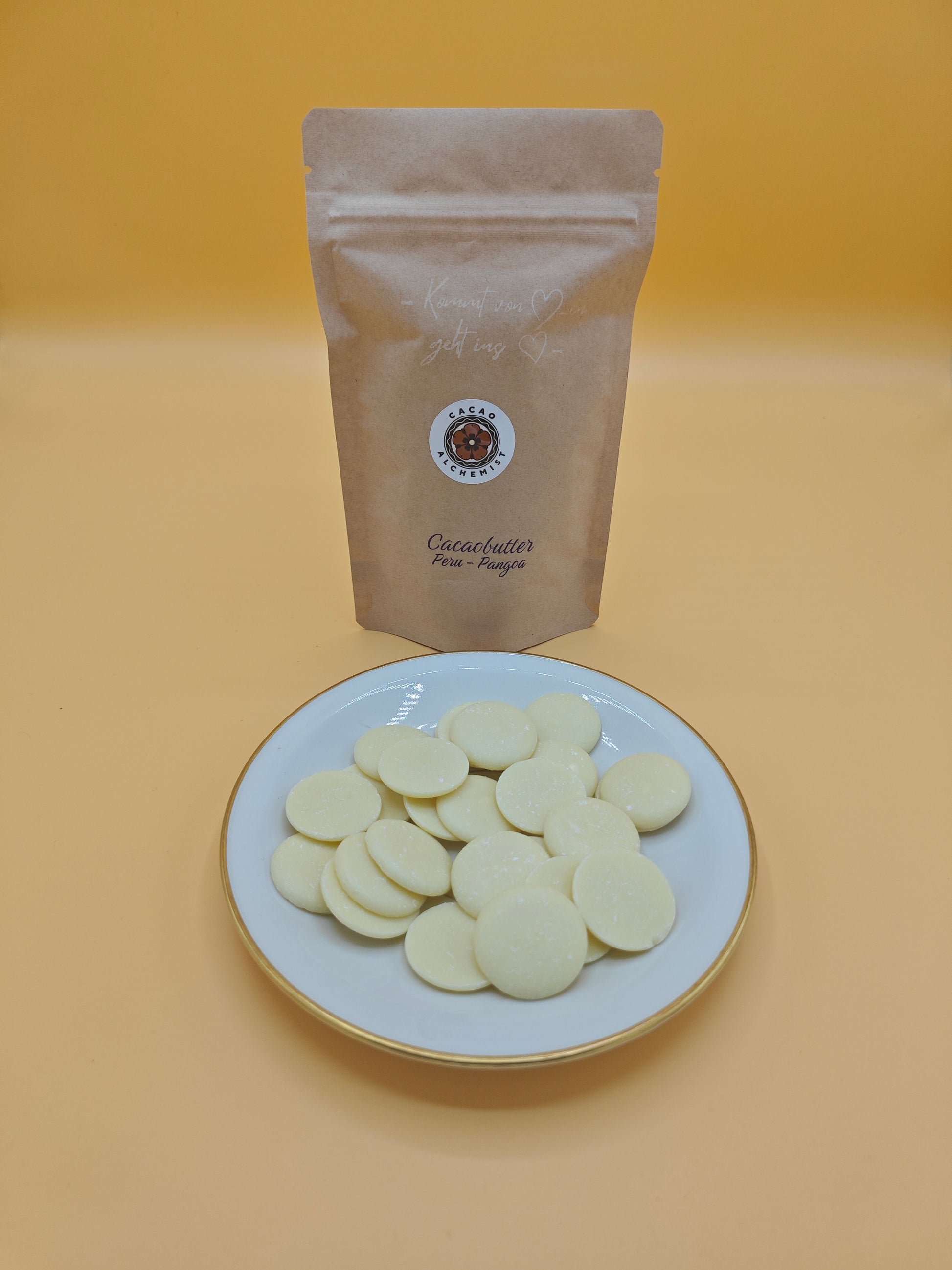 Erlebe die reine Essenz der Kakaobohne mit unserer goldgelben Cacaobutter aus Peru. Schonend gepresst und sorgfältig verarbeitet, bewahrt sie ihre natürliche Reinheit und ihre feine, seidige Konsistenz. Sie ist ein stiller Begleiter für alle, die Qualität, Ursprung und Handwerk schätzen.