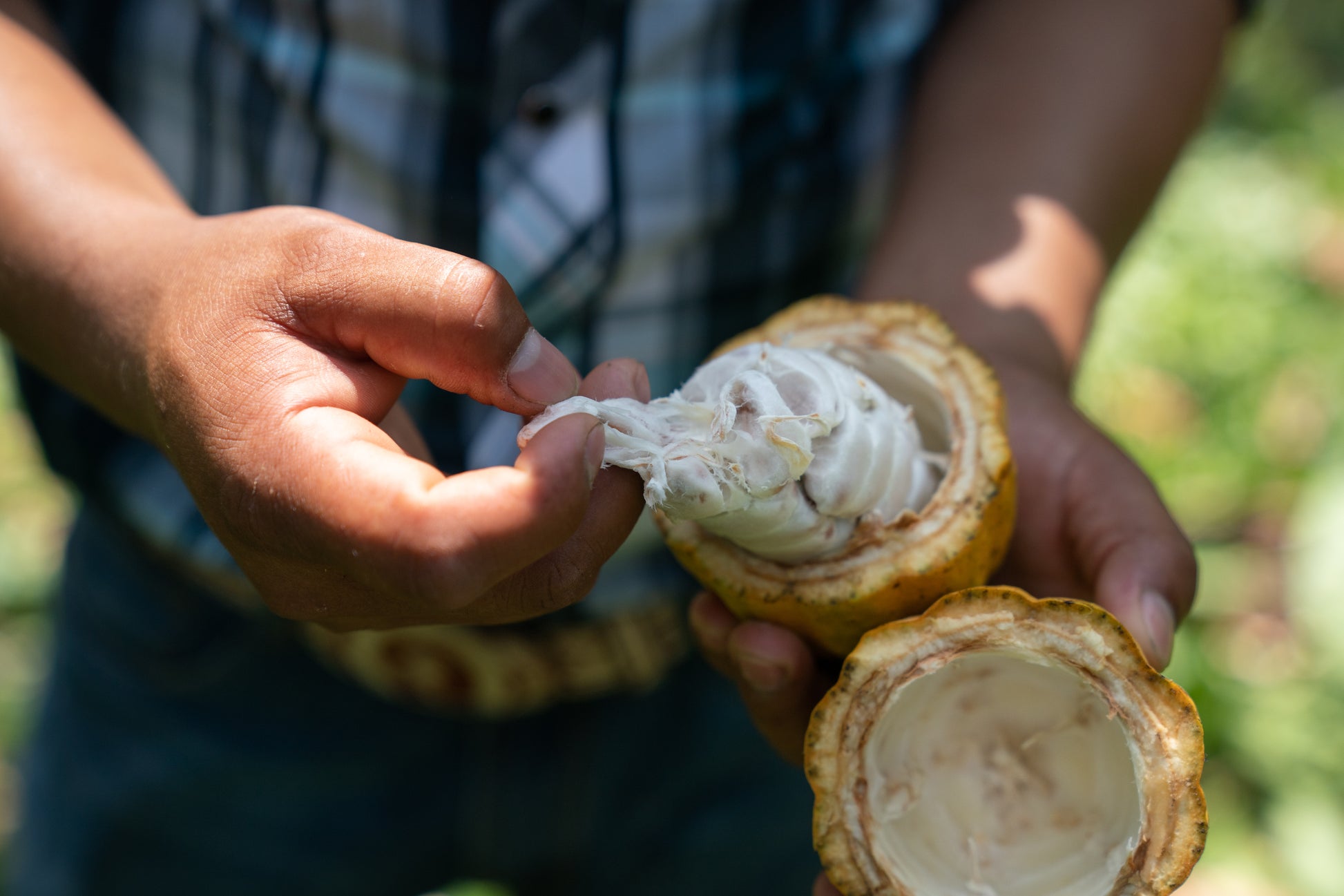 Unsere Bohnen stammen von naturbelassenen Cacaobäumen, die aus einer Mischung von Wild- und Mischkultur gewachsen sind. Jede einzelne Frucht wird von Hand geerntet, um sicherzustellen, dass nur die besten und reifsten Cacaoschoten für die Weiterverarbeitung ausgewählt werden.